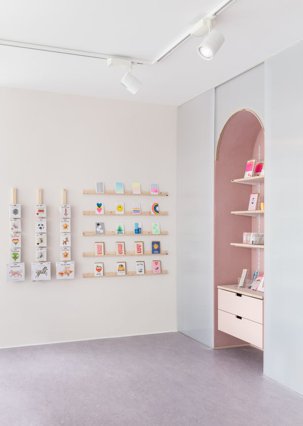 Nicht nur eine Party bedarf Planung bis ins kleinste Detail. Auch in diesem Ladenlokal für Party Zubehör liegt der Schwerpunkt bei dem Interior auf Zirkularität.